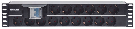 Intellinet 19" 2U Rackmount 15-Output Power Distribution Unit (PDU), EU CEE 7/3 Outlets, With Double Air Switch, Built-in 3 m (10 ft.) Power Cord with