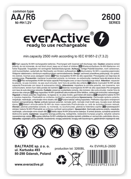 everActive44 in voorraadRechargeable batteries everActive Ni-MH R6 AA 2600 mAh Professional Line
