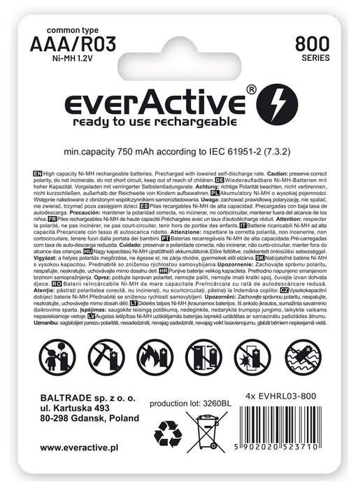 Rechargeable batteries everActive Ni-MH R03 AAA 800 mAh Silver Line