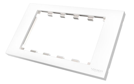 VisionUitverkochtDouble-gang uk surround - frame which accommodates 5 modules - fits to TC3 BACKBOX2G or any standard double-gang uk backbox (pattress) 146 x 86 mm - p